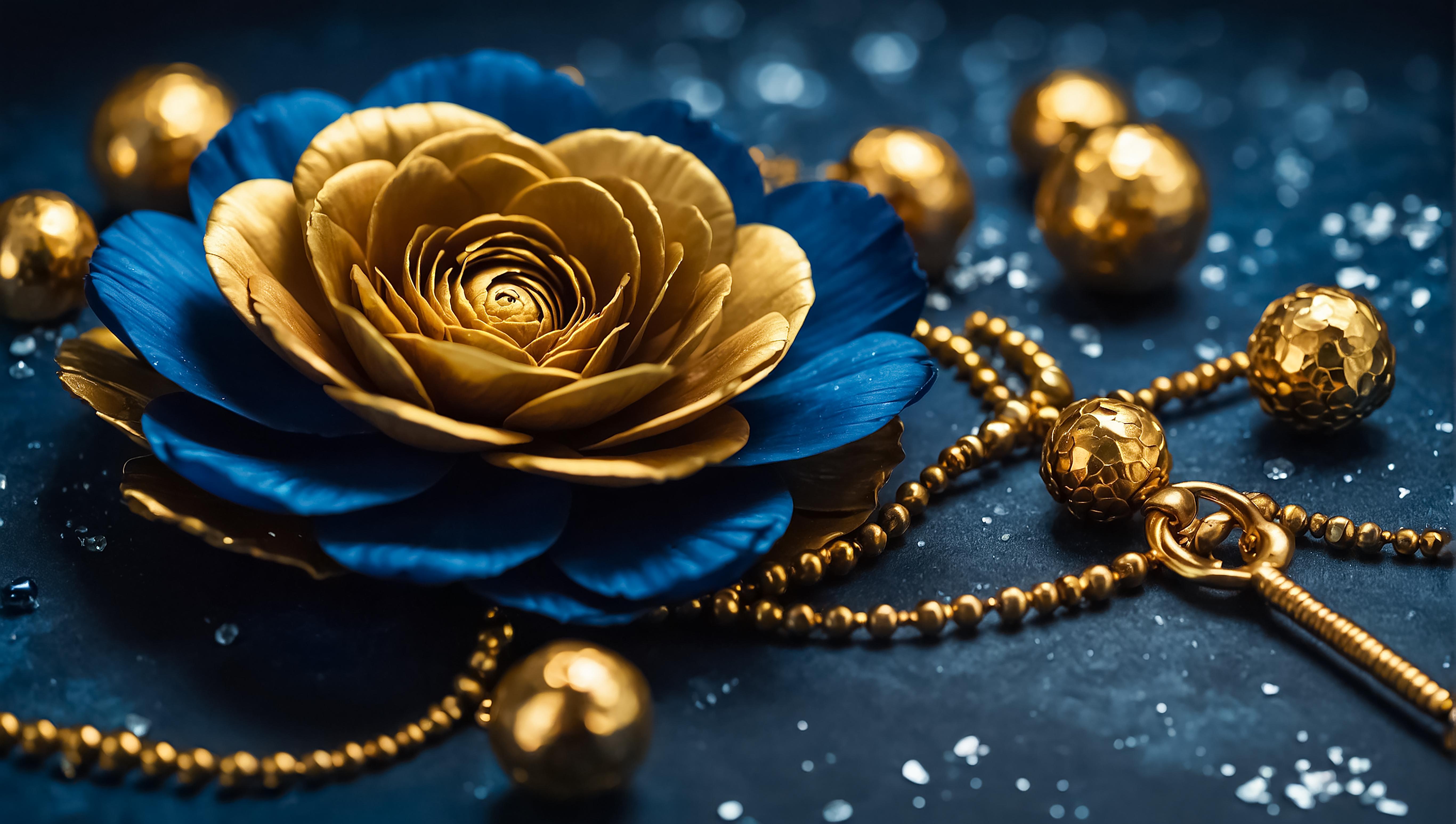 Design: Elegant floral artwork in gold and navy tones
