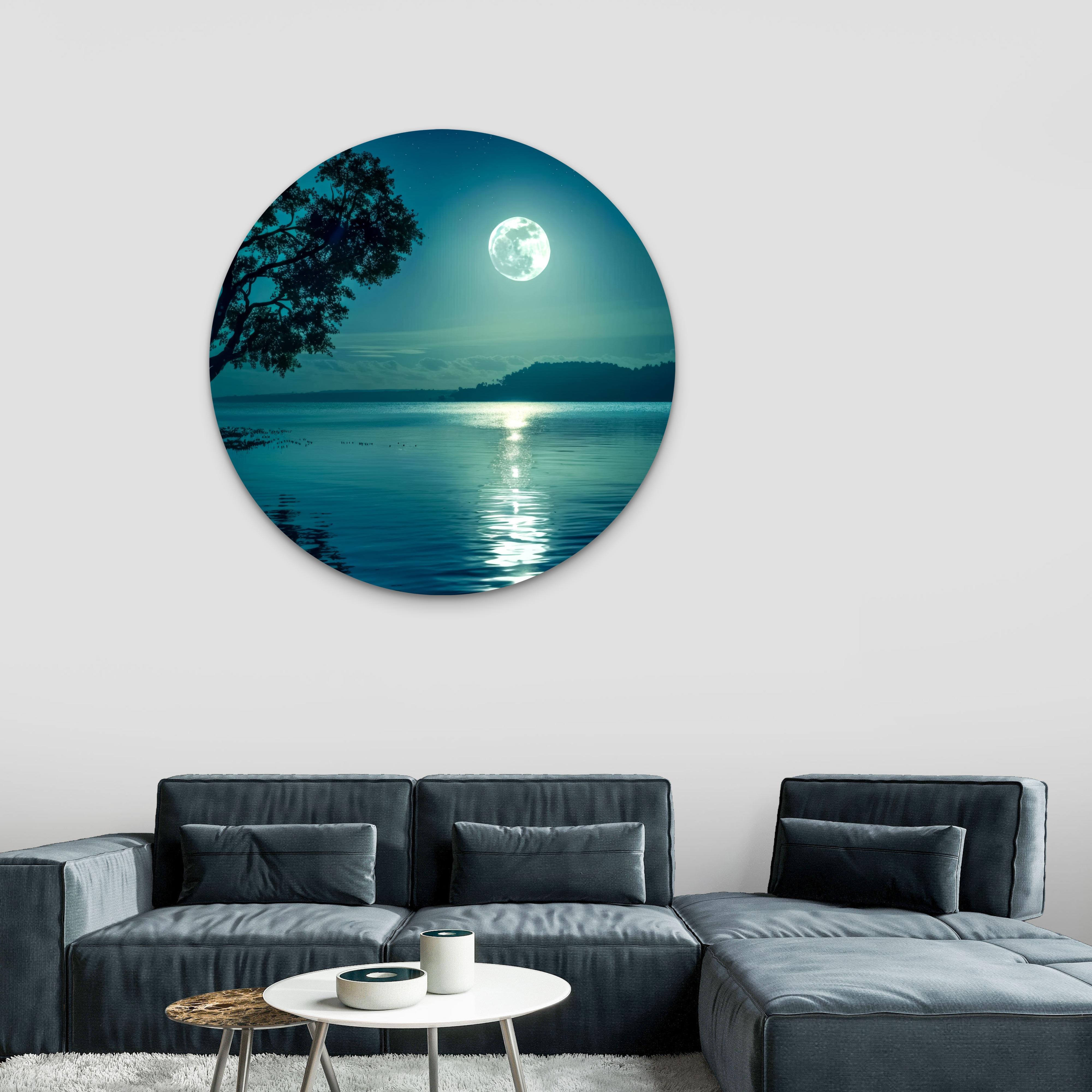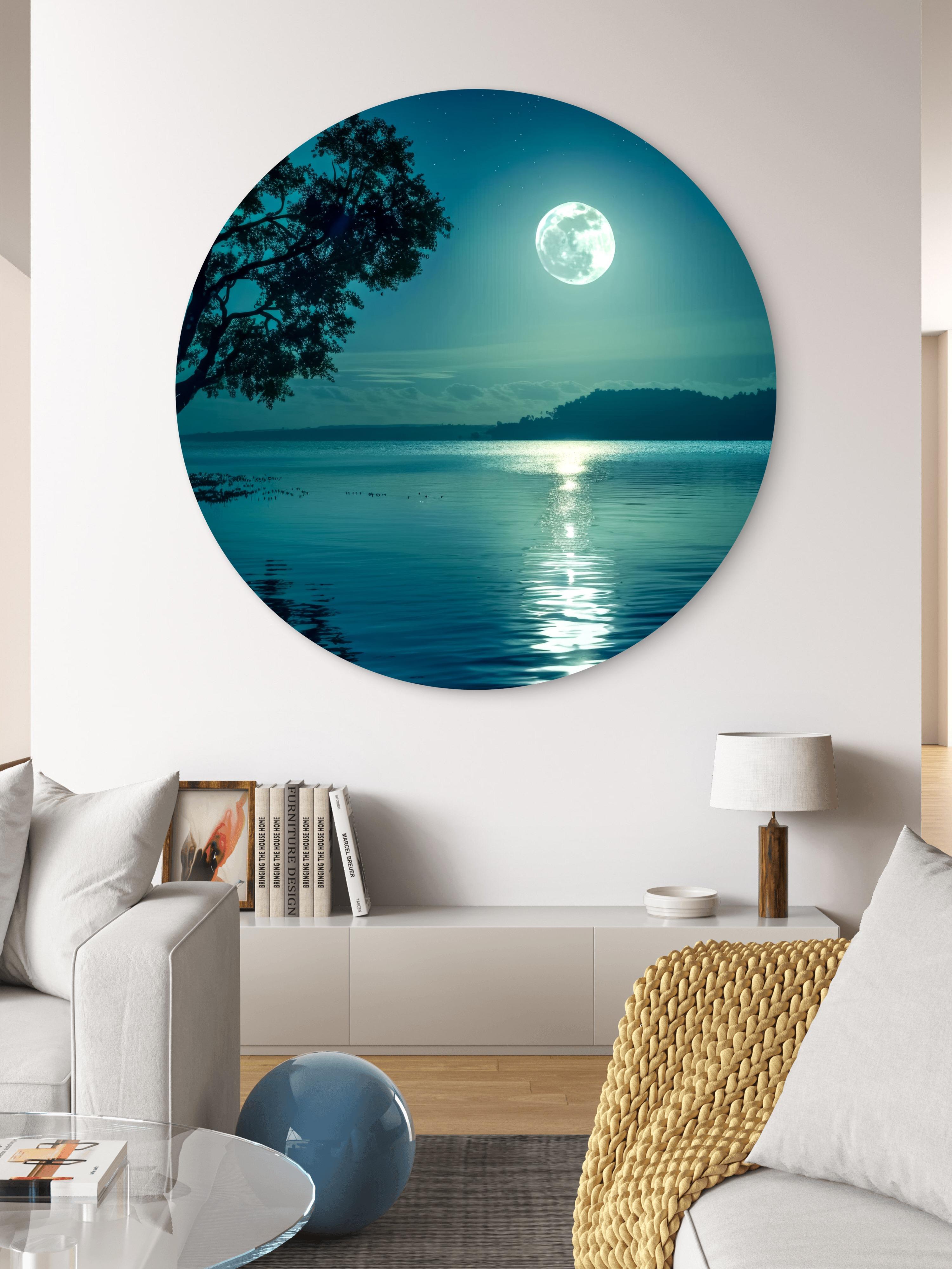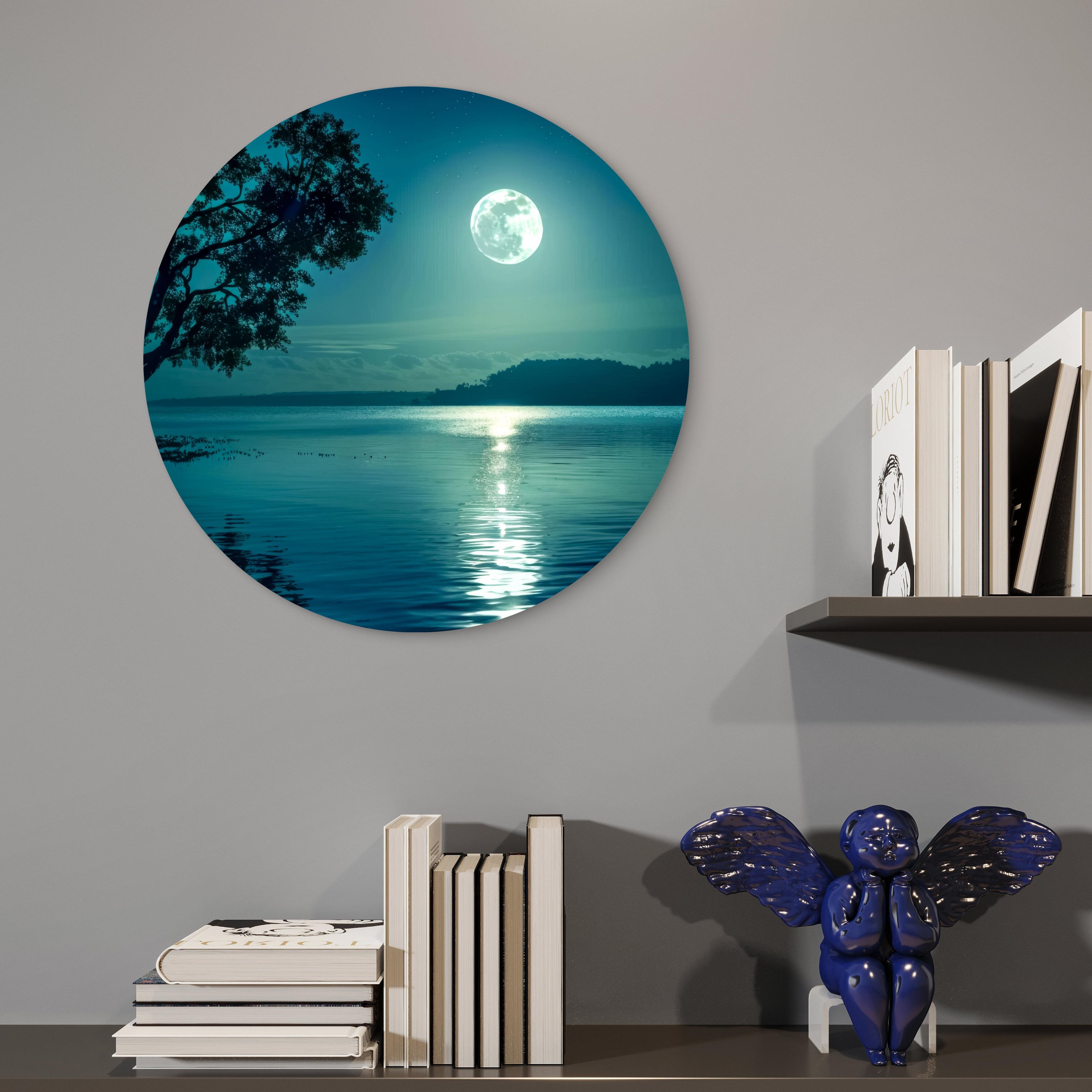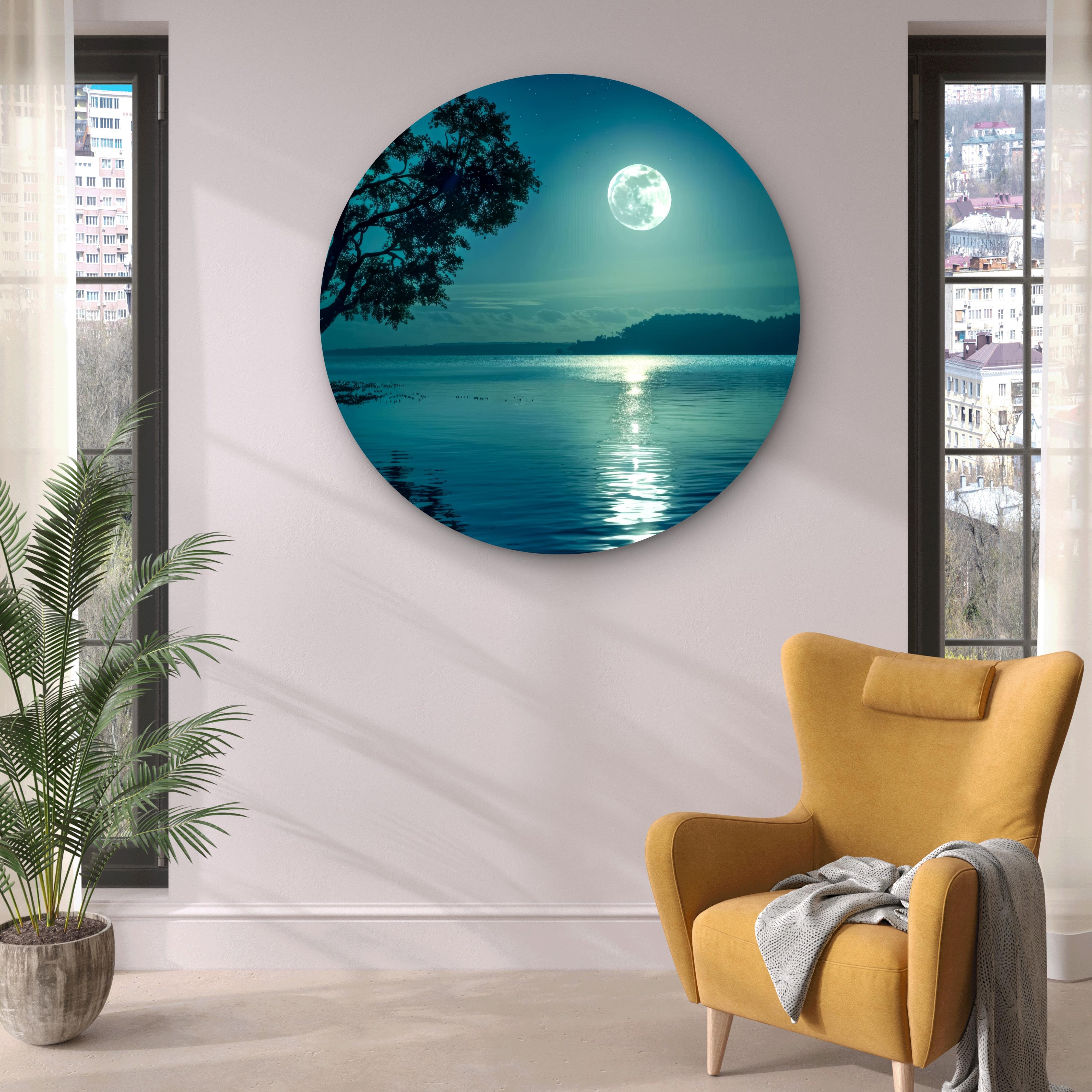 This captivating round tempered glass wall art brings the calm and mystery of the night into your home. The reflection of the bright moonlight over the peaceful lake adds a sense of depth and tranquility to any space. Its modern design offers both simplicity and elegance, making it a perfect addition to contemporary interiors.