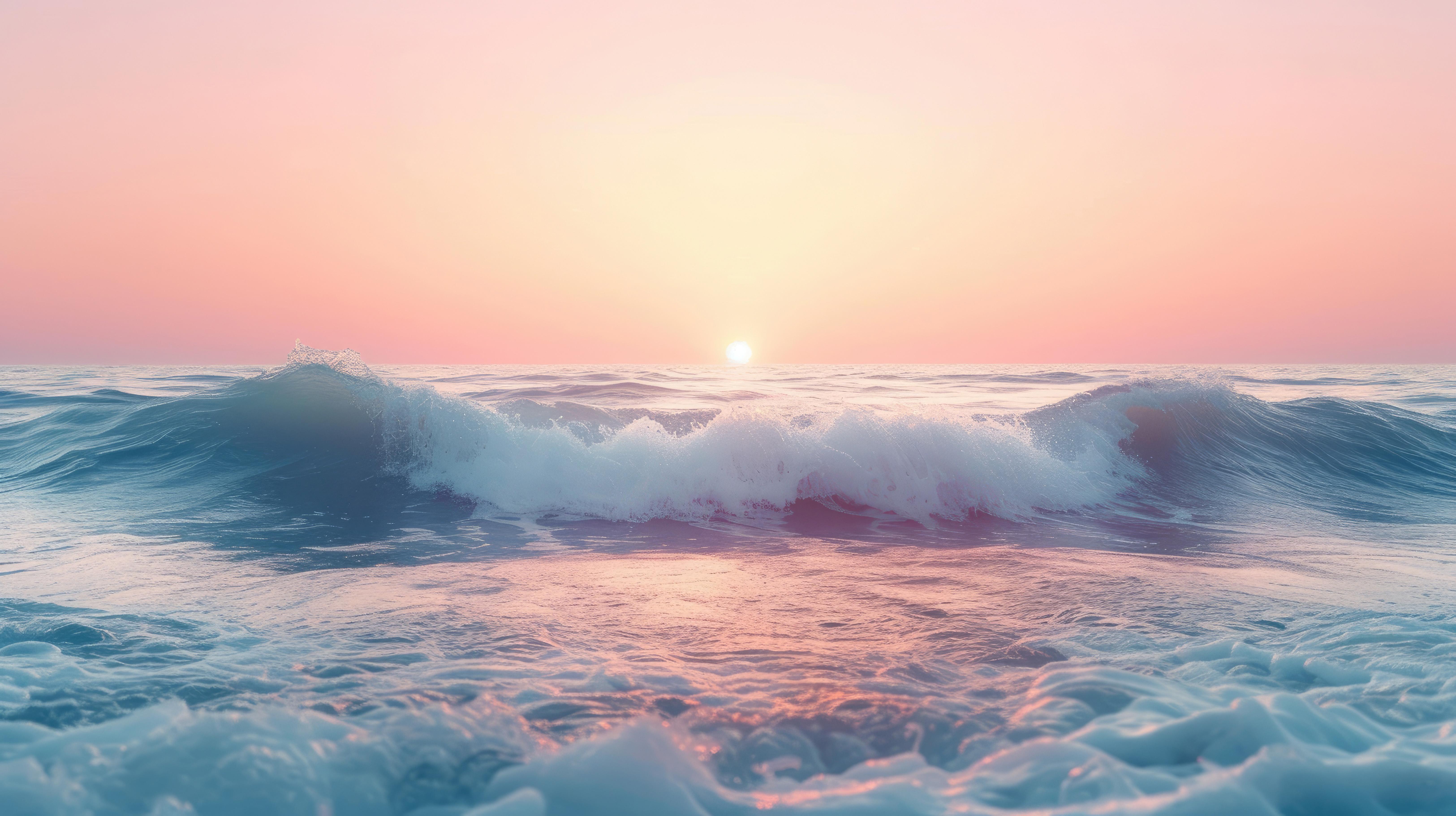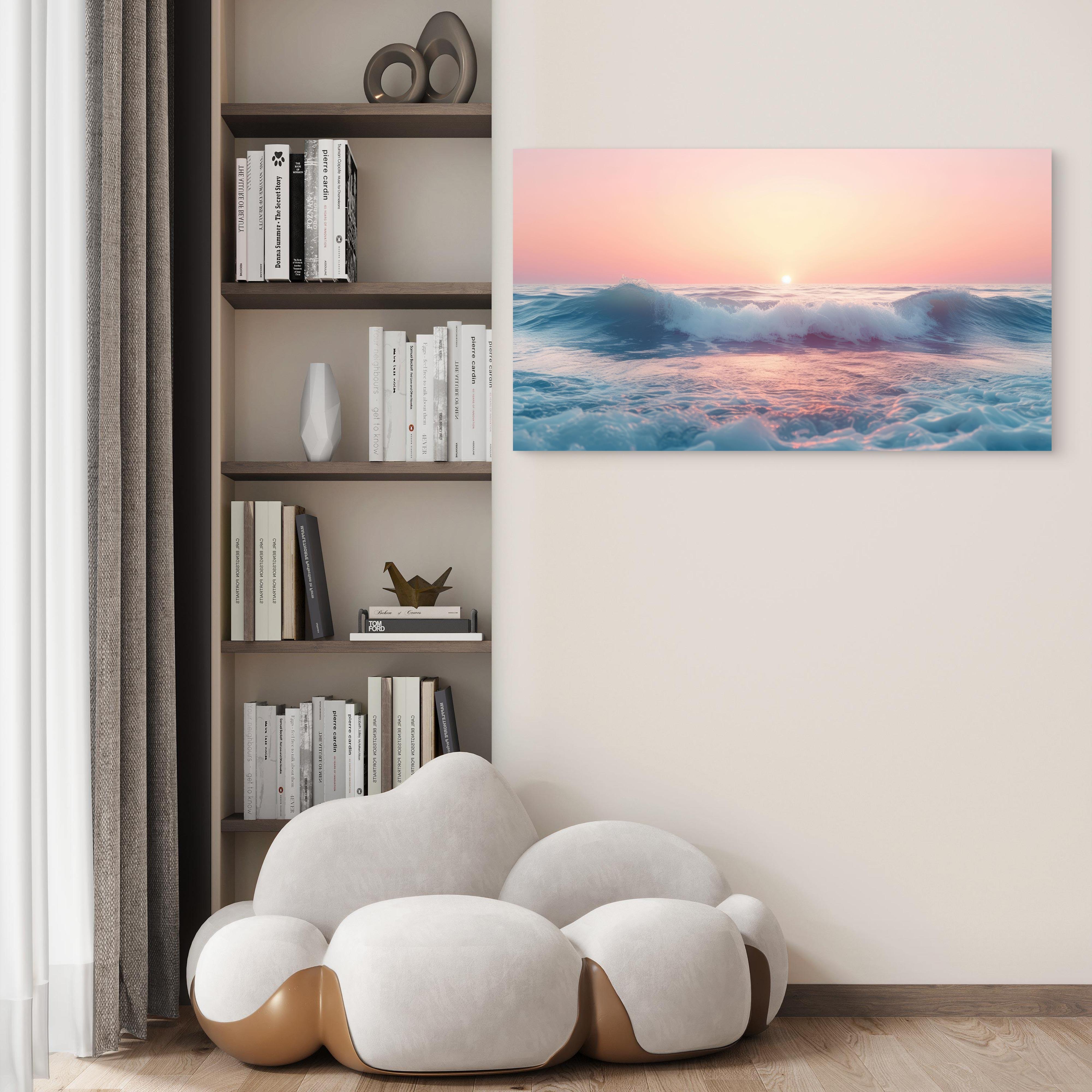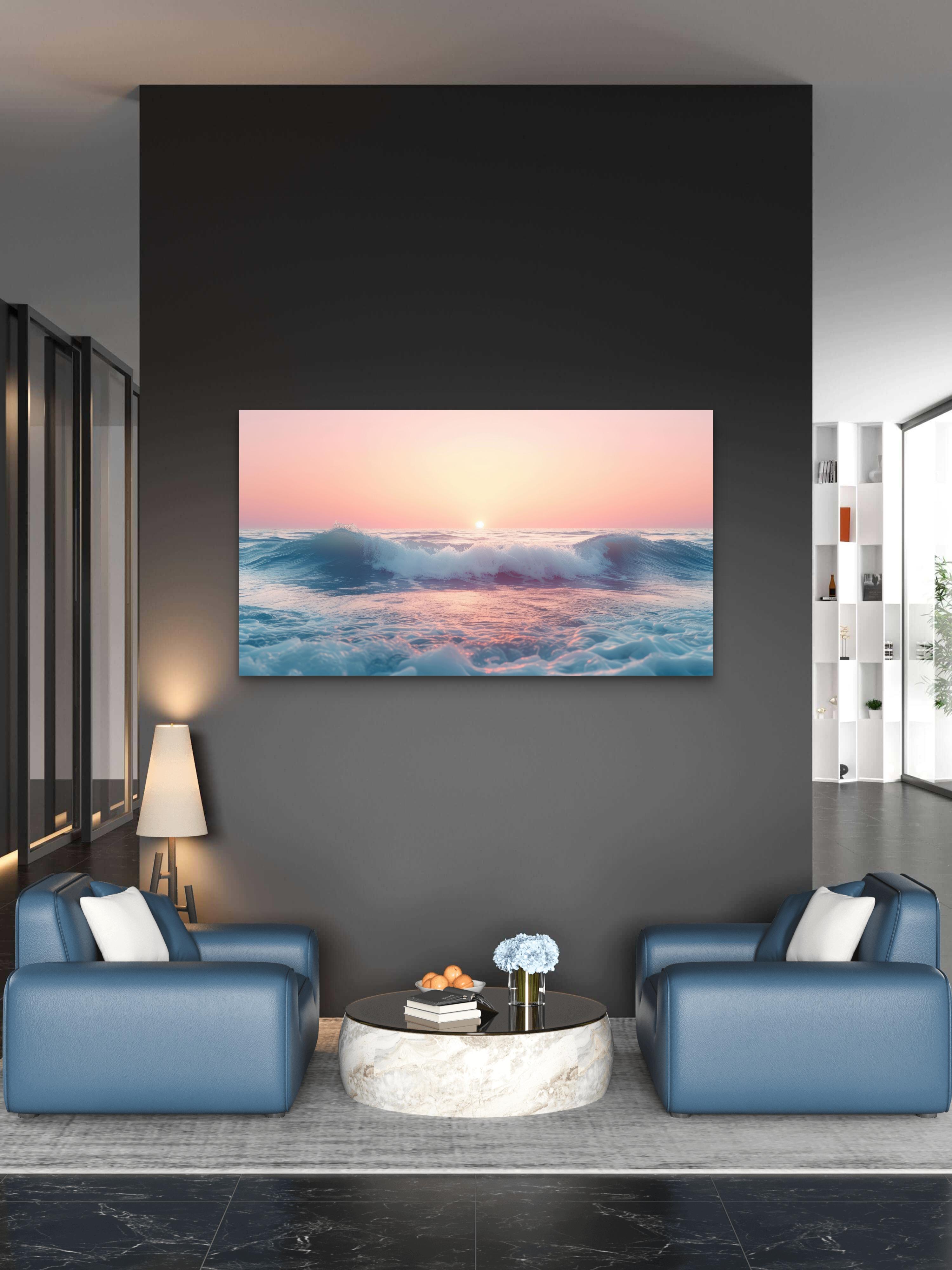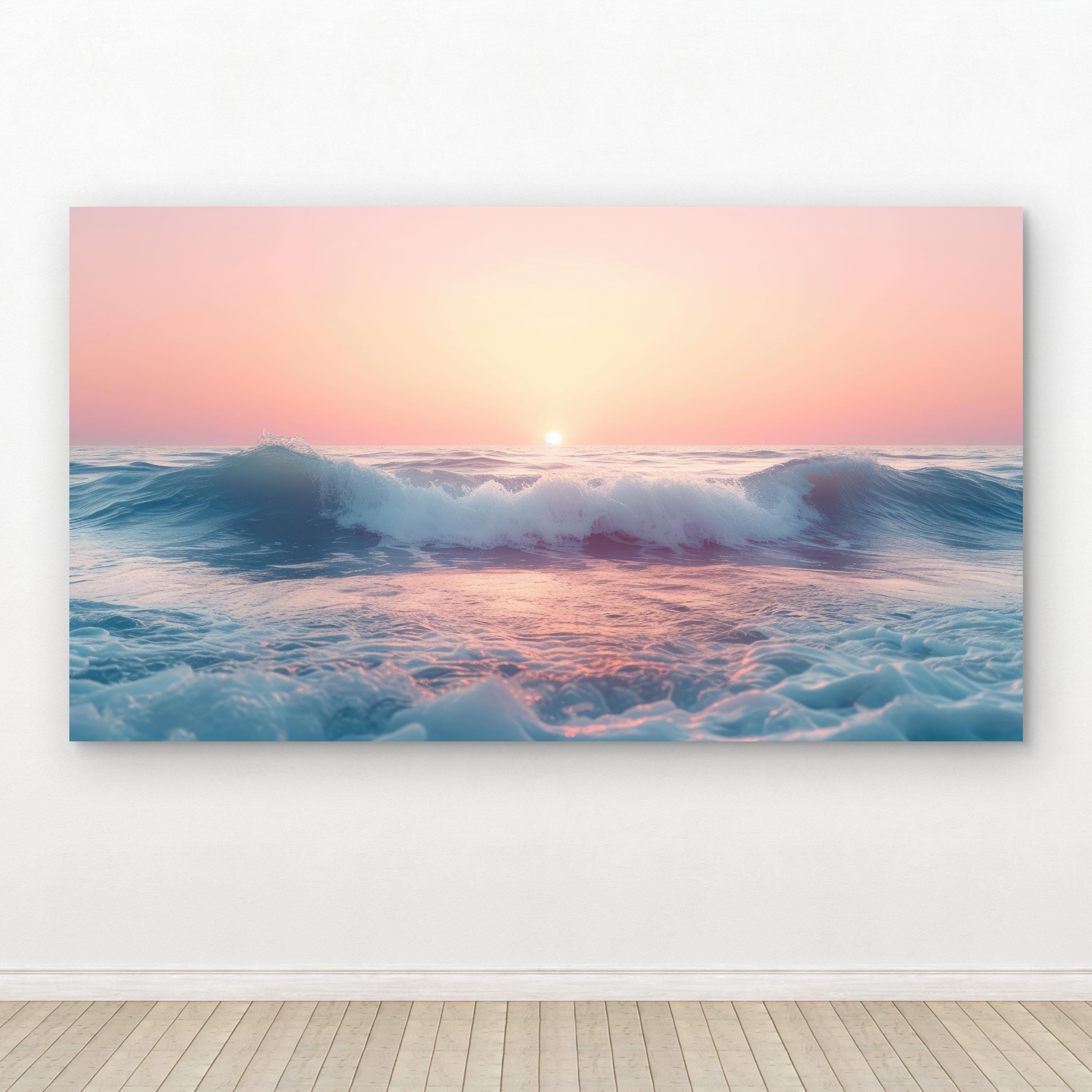 Bring peace and harmony into your home with this soft pastel ocean scene. The gentle pink and orange tones of the sunset blending with the blue waves create a tranquil and elegant atmosphere β a perfect representation of calm and balance.
